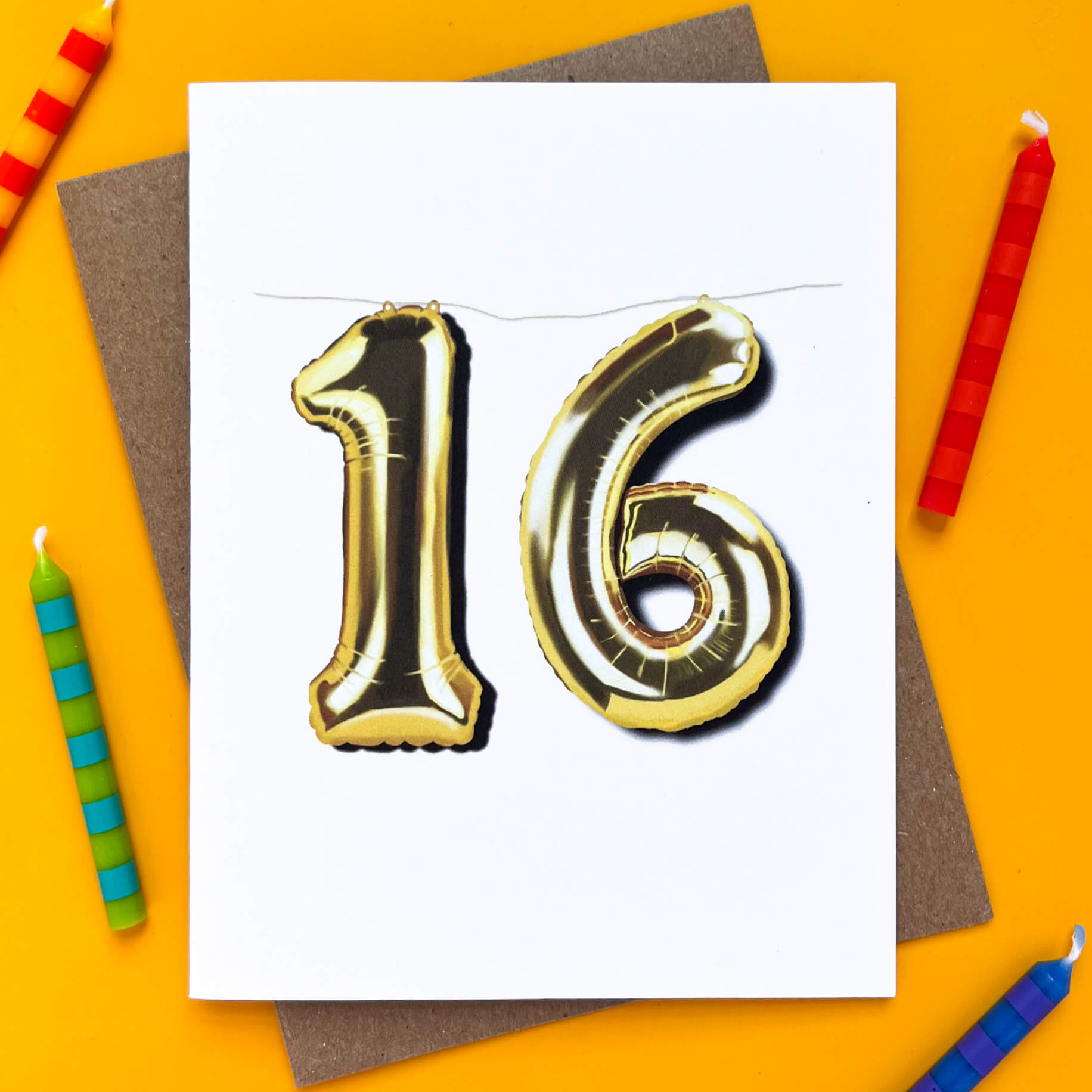 Celebrate the sweet 16 with this festive balloon card! It's a milestone birthday, so send this card with its illustrated mylar balloons to show you really care. Make it a birthday to remember! (It saves you from having to purchase real balloons!)