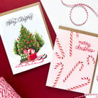 Bring a nostalgic touch to your Merry Christmas wishes with this festive tree and sled full of presents. A cheerful scene full of red and green, it's perfect for classic holiday vibes. Whether you’re sending happy Christmas wishes to coworkers or seasons greetings to loved ones, this card delivers joy. The playful gifts and snowy setting make it feel like a childhood holiday dream. Add it to your holiday card stash for a dash of winter wonder.