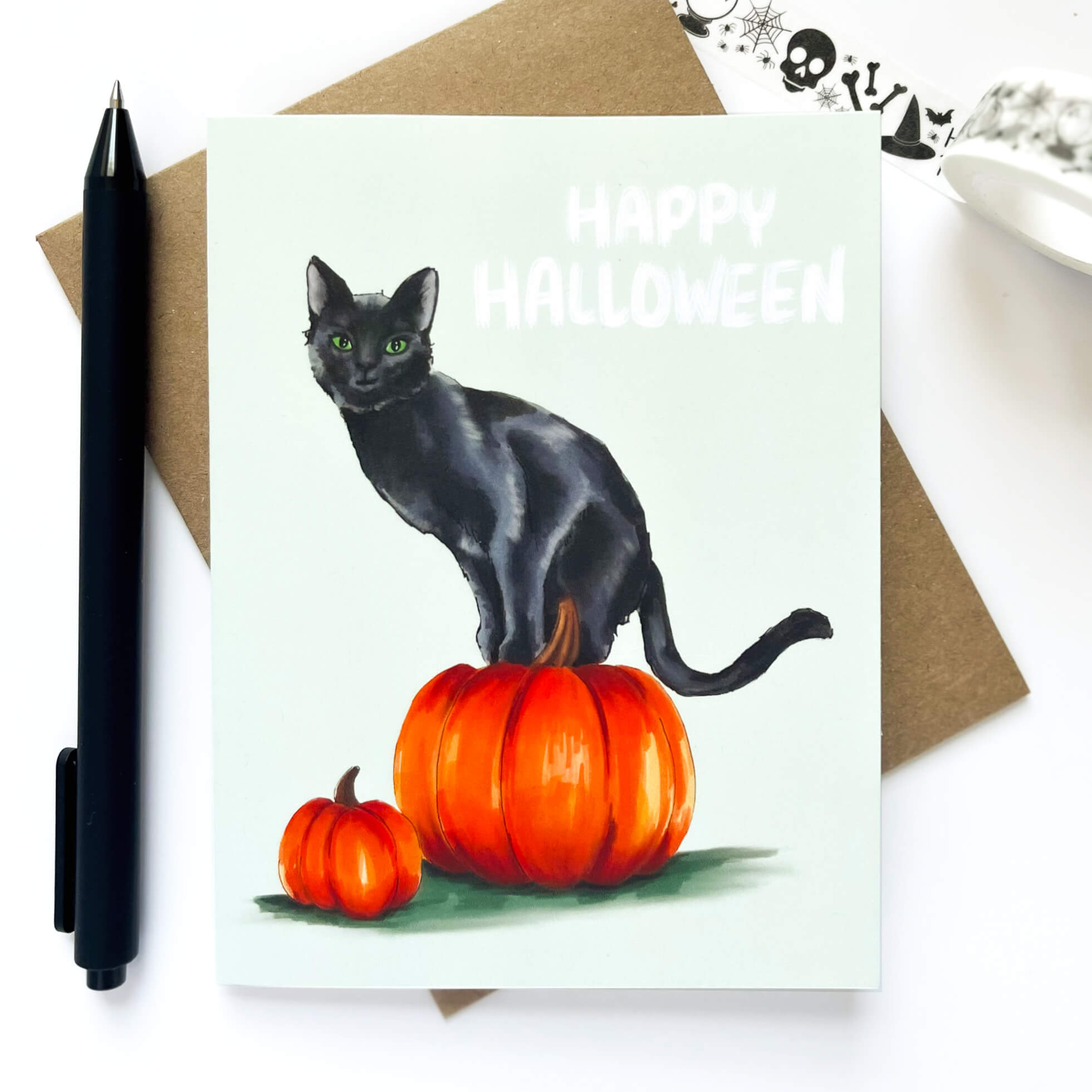 Black Cat and Pumpkin Halloween Card