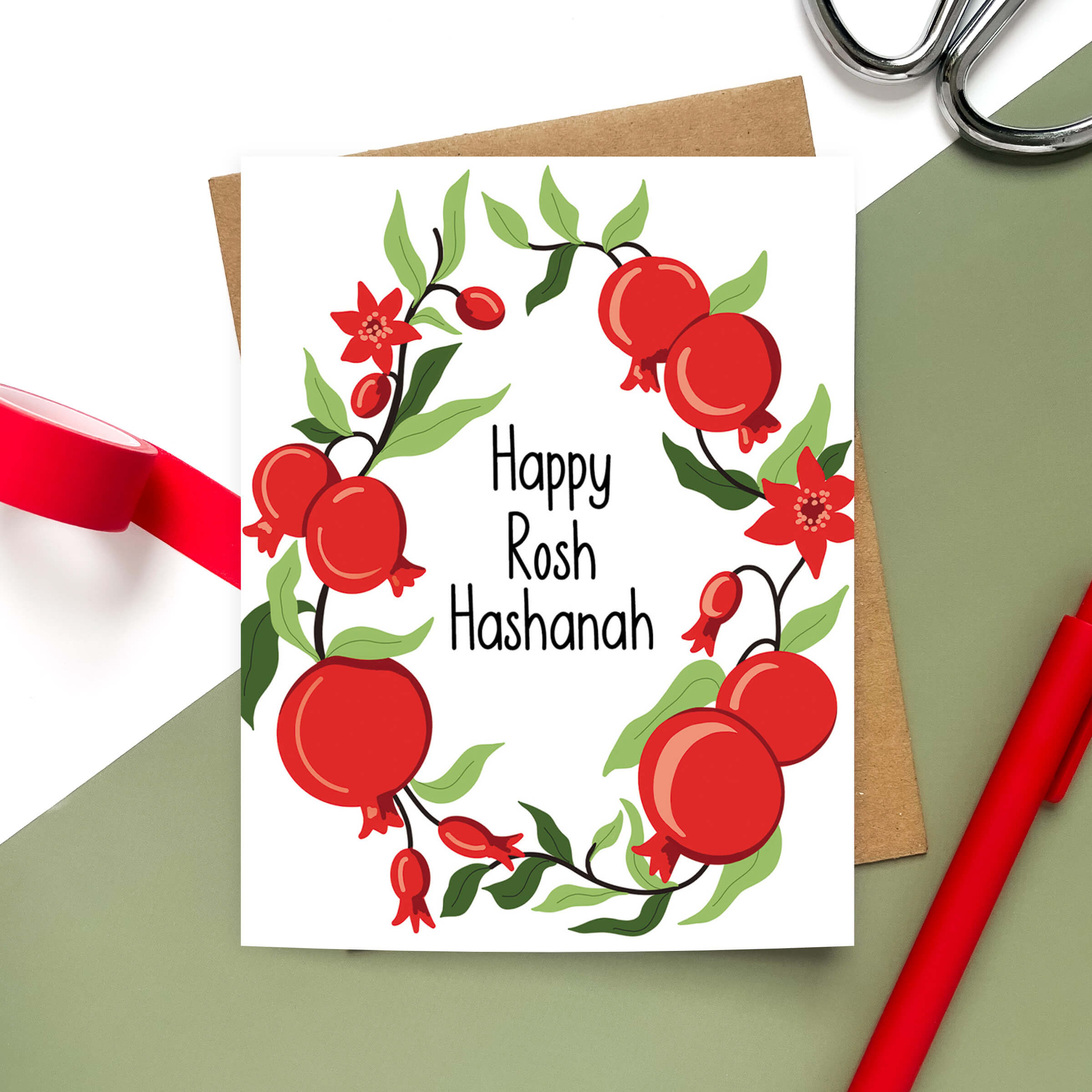 Pomegranate Wreath | Rosh Hashanah Jewish New Year Card