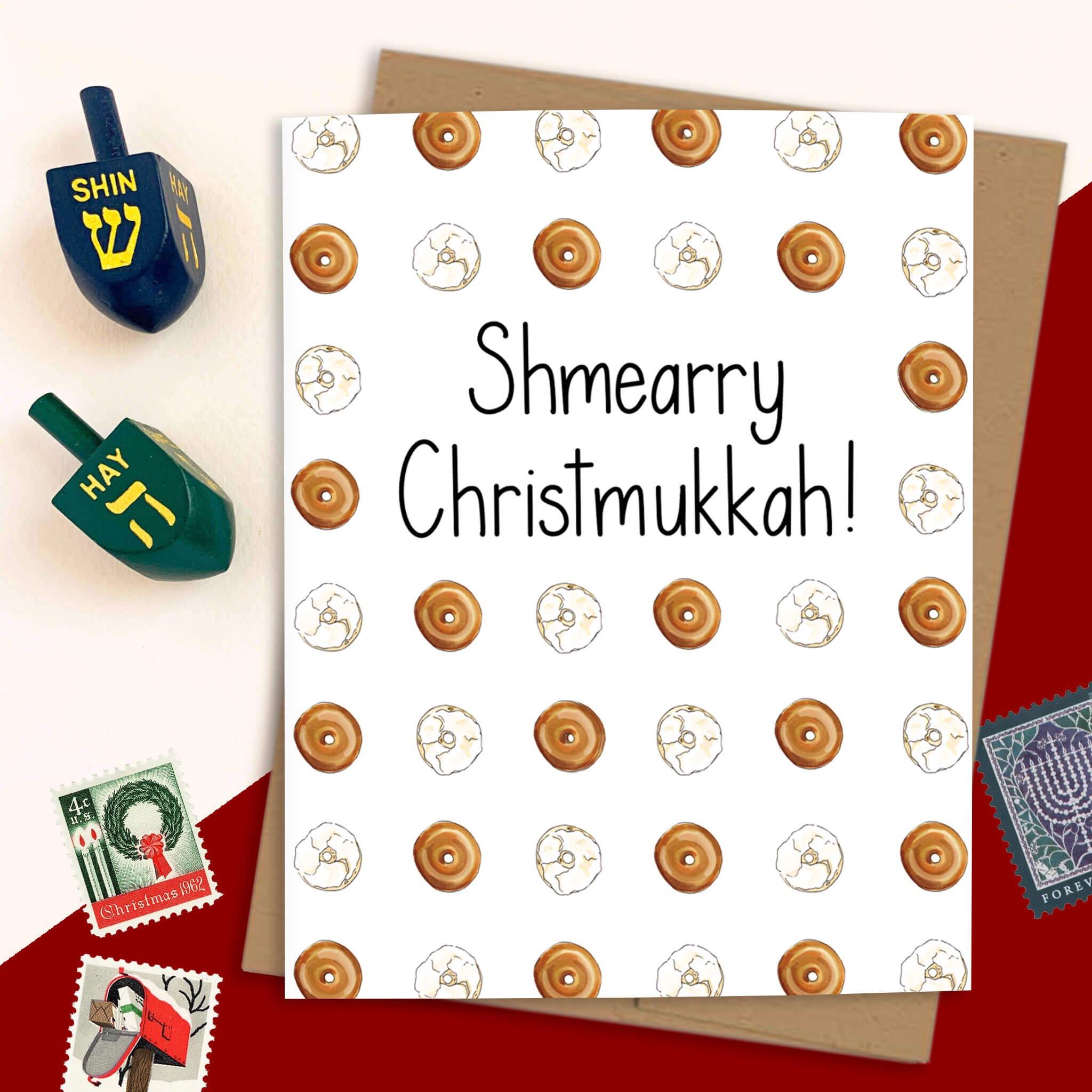 The perfect card if to celebrate both Hanukkah and Christmas. Especially if you also love a good bagel.