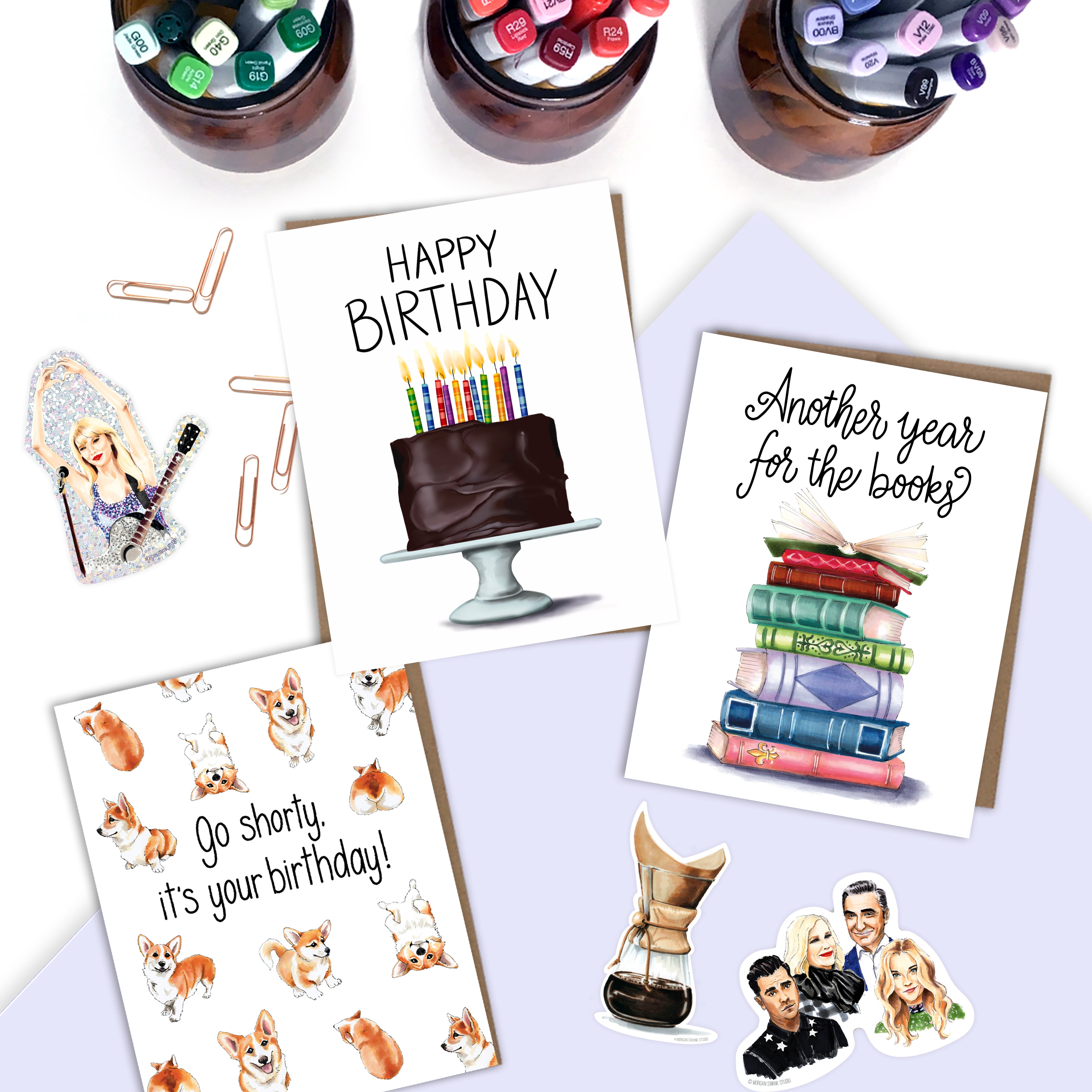 I started Morgan Swank Studio with a desire to create art people could enjoy in everyday life—the kind of art that makes you feel good and lets you express your love and care to those around you. I’ve developed a line of greeting cards and gifts that are unique, charming, and expressive. If you're looking for the perfect card for a specific occasion or just to brighten someone’s day, I have a little something for everyone.