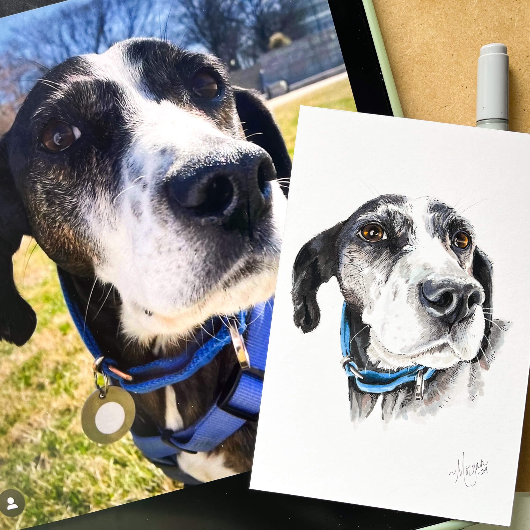 Each pet portrait, couple portrait, or family illustration is made from your photo reference with care and character. I also take on small business illustrations, engagement scenes, and special locations too—if it means something to you, I’d love to draw it.