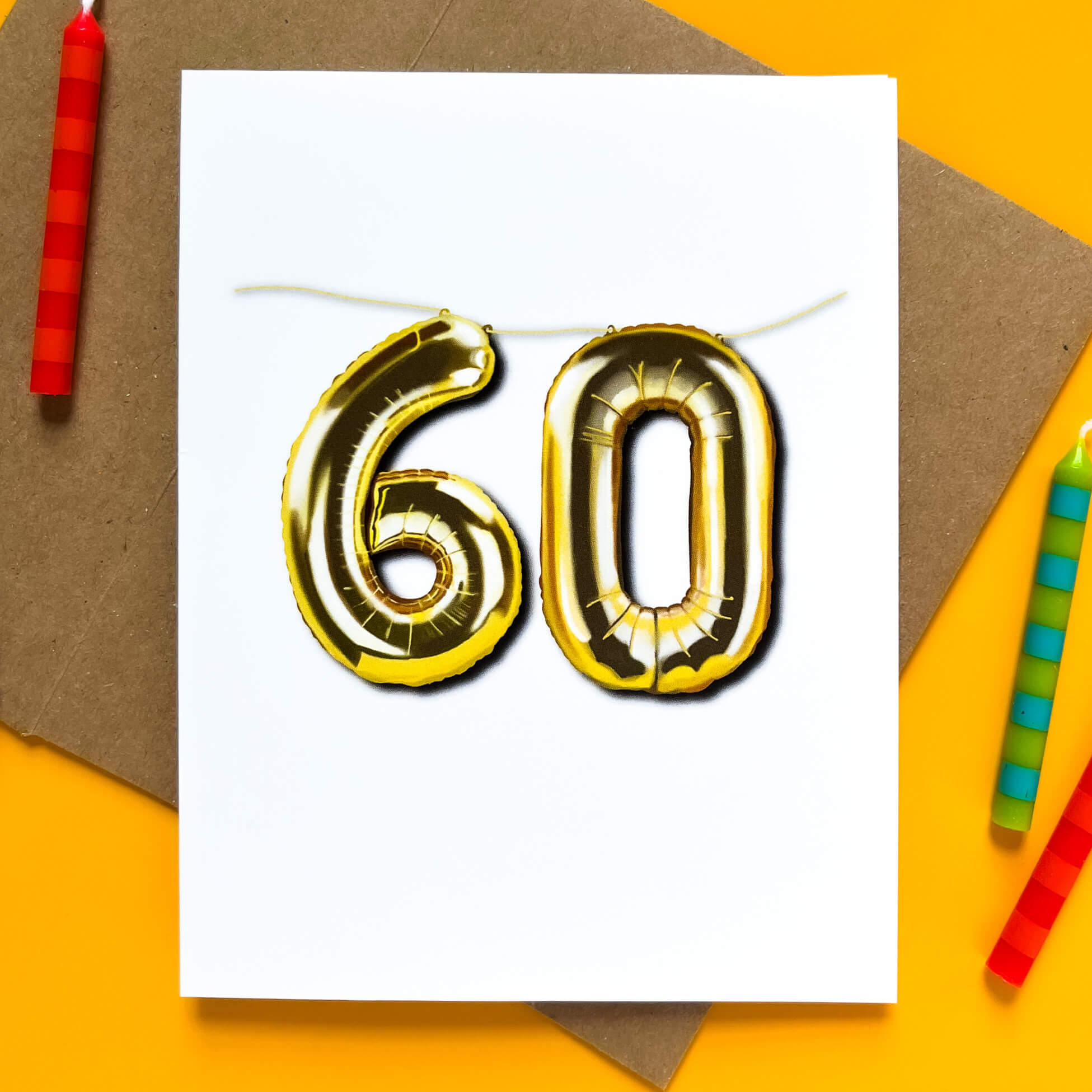 Celebrate the big 6-0 with this festive balloon card! It's a milestone birthday, so send this card with its illustrated mylar balloons to show you really care. Make it a birthday to remember! (It saves you from having to purchase real balloons!)