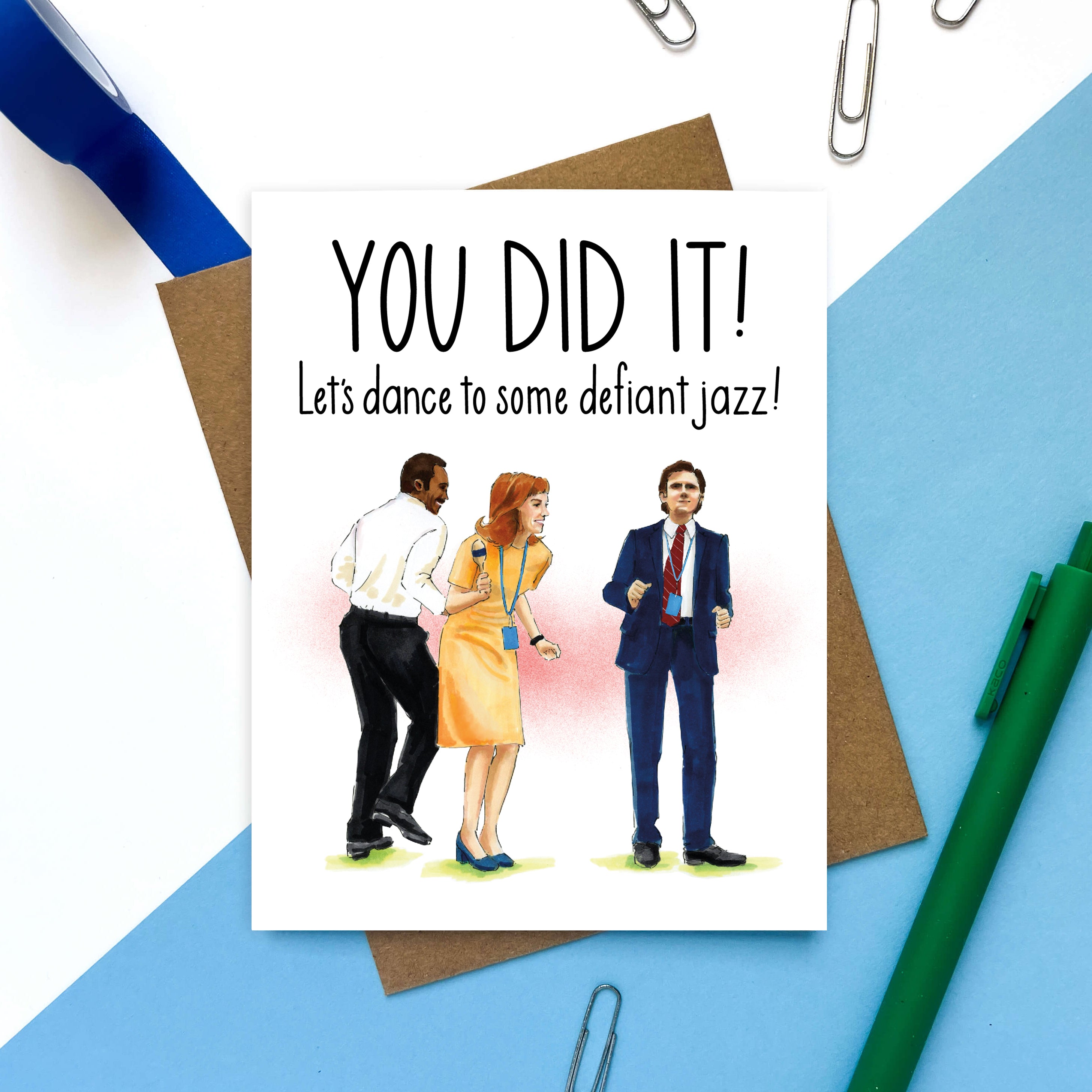 Let’s dance to some Defiant Jazz. This Severance-inspired greeting card is perfect for promotions, graduations, or any rebellious triumph worth celebrating.