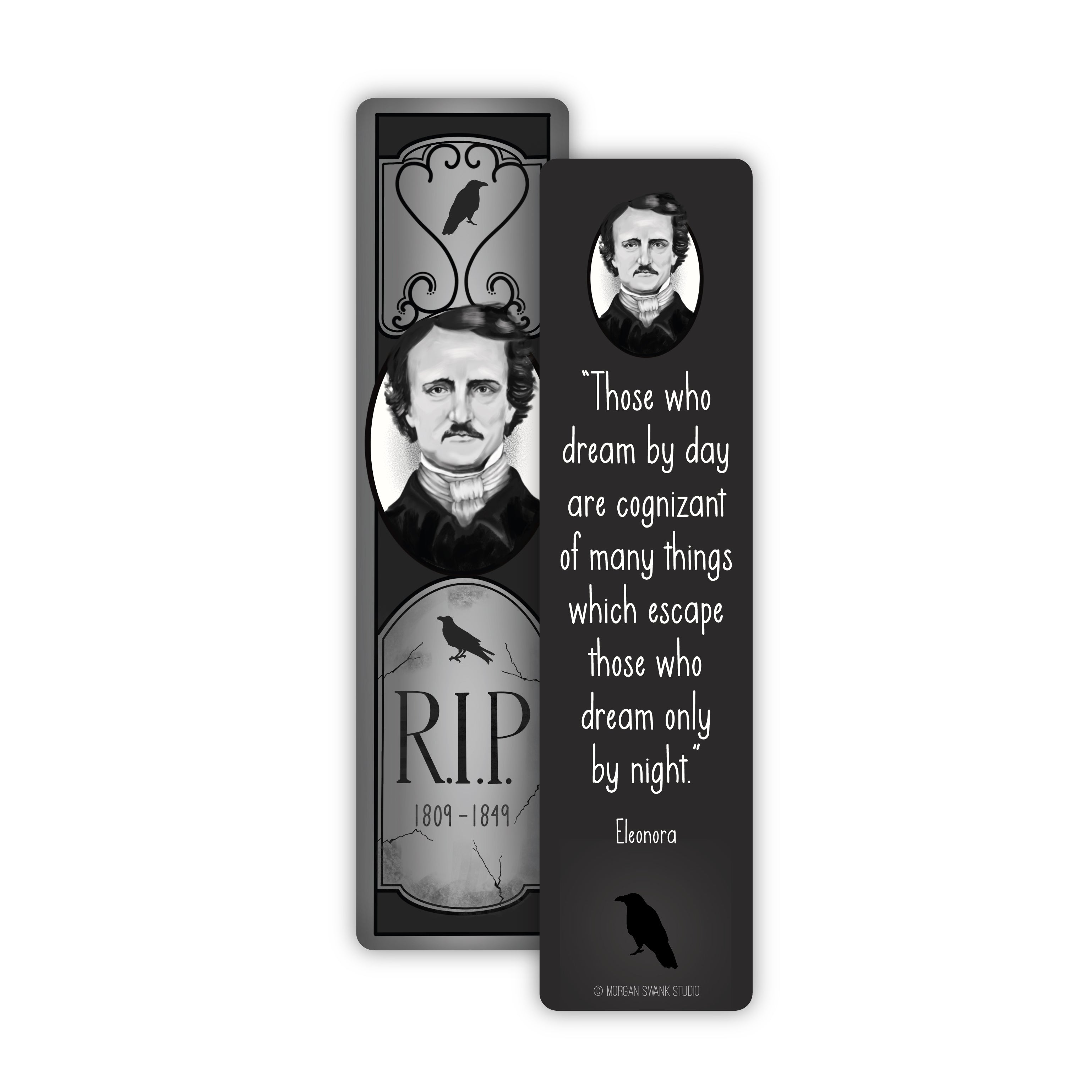 Perfect for readers who like a little mystery and macabre with their pages. One side features a striking black-and-white illustrated portrait designed like a classic book spine, while the back carries a memorable Poe quote to haunt your thoughts between chapters. A thoughtful gift for Poe fans, gothic literature lovers, and anyone who appreciates a literary twist of dark charm.