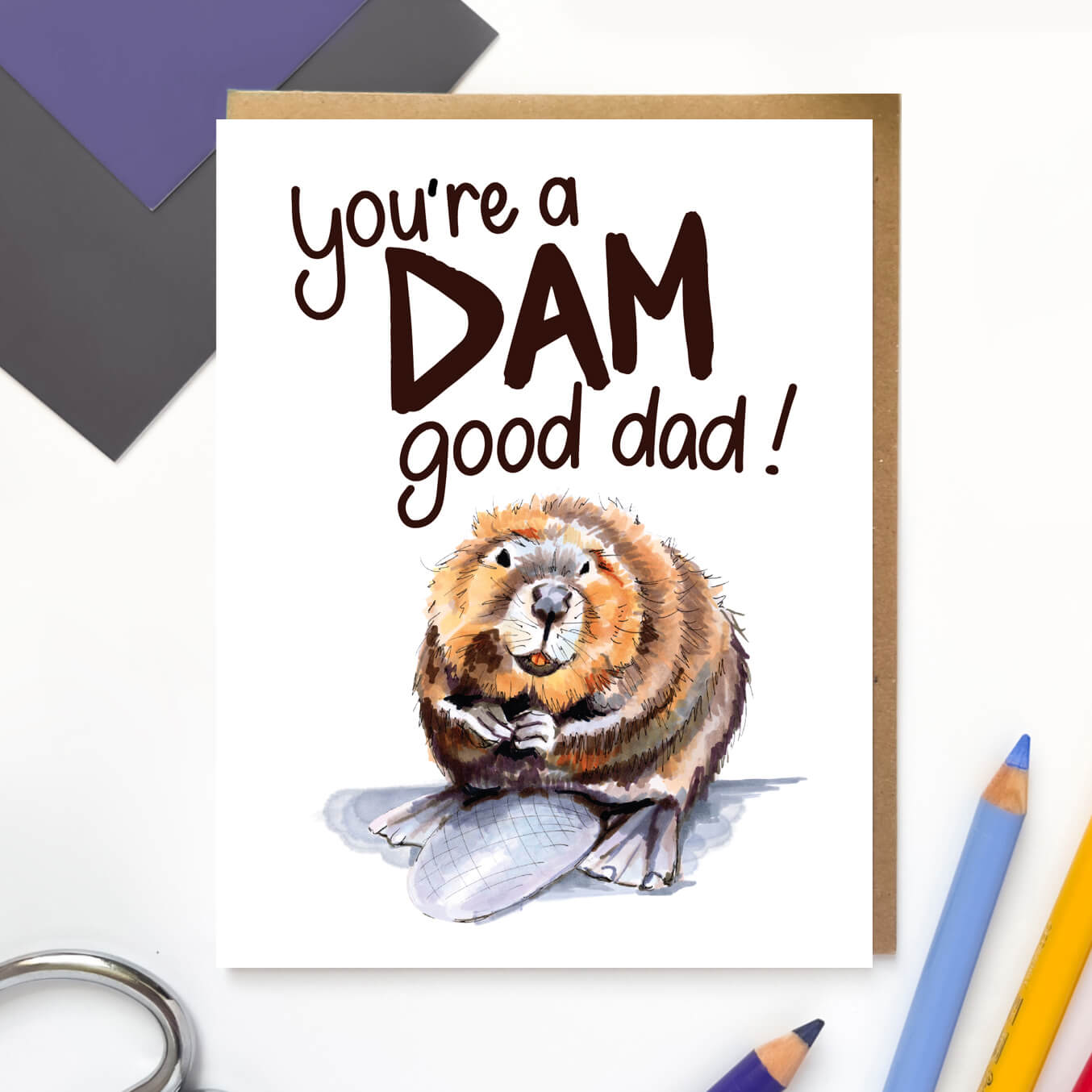 Show Dad he's the best with this adorable Father's Day card featuring a hand-drawn beaver and a clever pun. Ideal for dads who love nature, animals, or just a good play on words. This charming greeting card is a fun way to express gratitude and love on his special day!