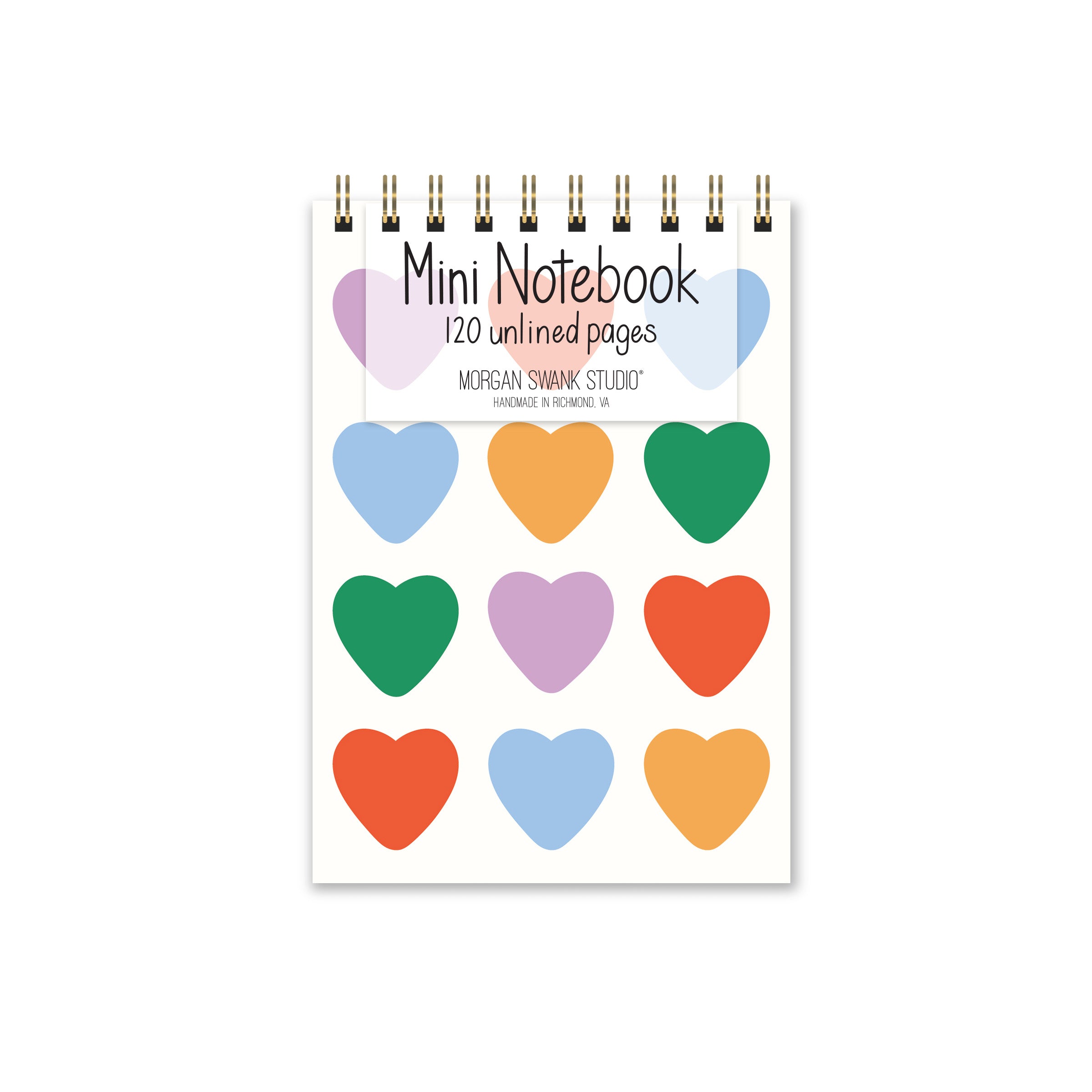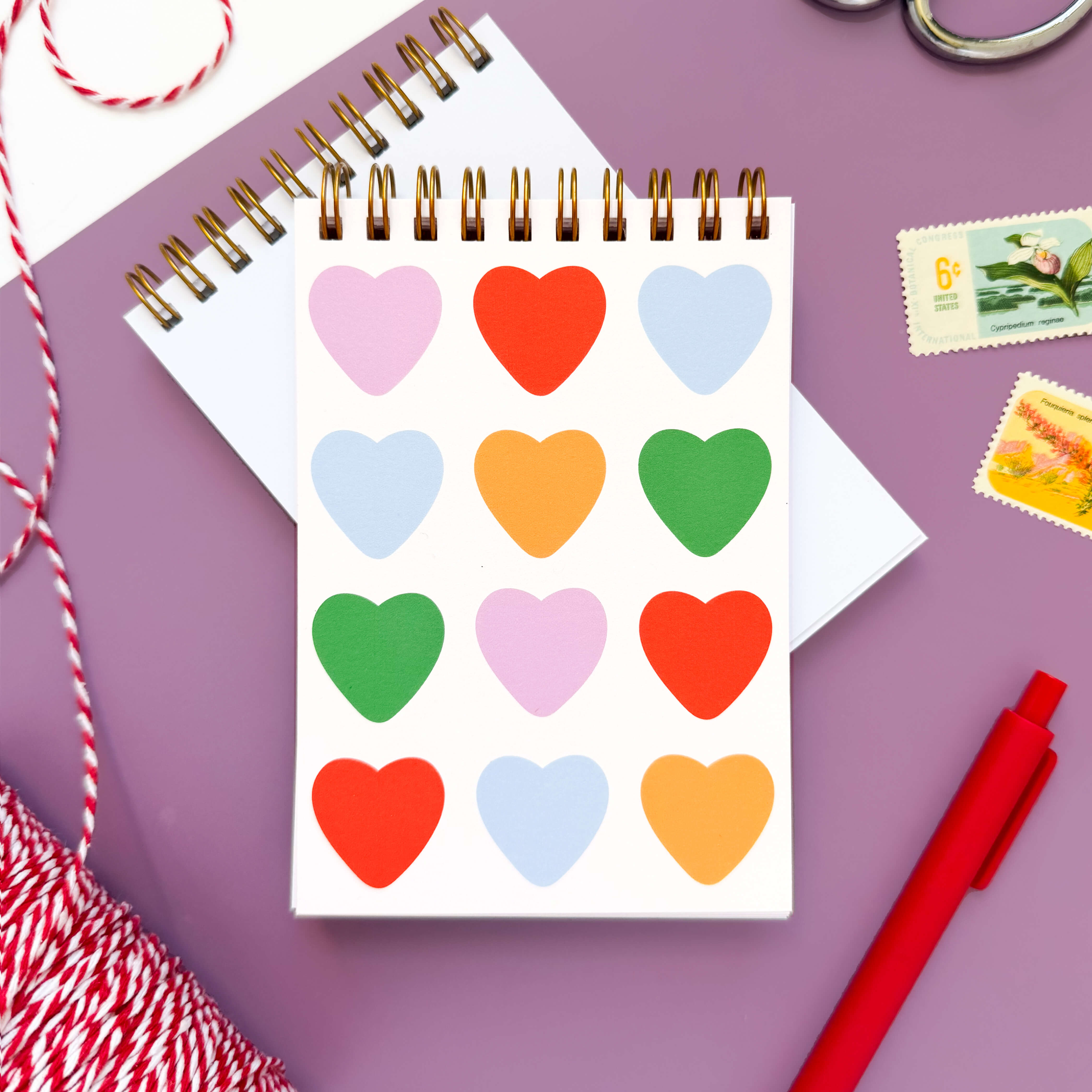 This mini notebook features a playful pattern of colorful hearts on the front, designed to spread a little joy wherever it goes. It’s cheerful, easy to love, and perfect for everyday notes, lists, and ideas. Designed for note-takers, list makers, and anyone who appreciates small, happy details. Compact and practical, it slips easily into bags, desks, and coat pockets.