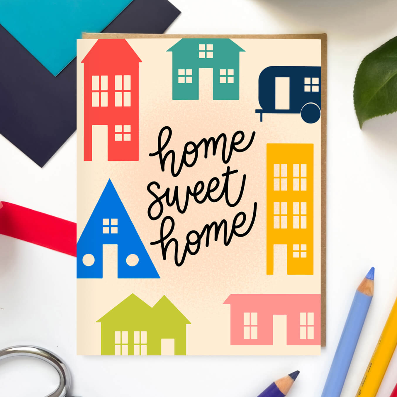 New homes come in all shapes and sizes these days. Celebrate whatever new dwelling place your friend has purchased with this Home Sweet Home card!