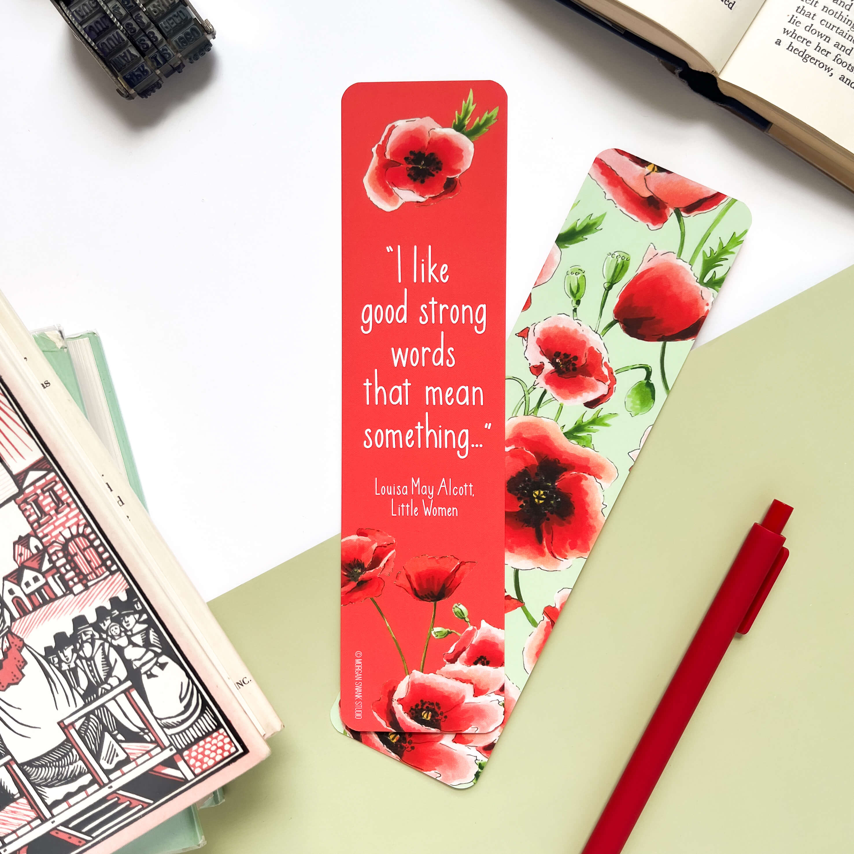 Bold blooms meet bold words on this poppy-themed bookmark featuring a quote from Little Women. Perfect for book lovers who appreciate a strong opinion and a pop of red, it’s a reminder that words—and flowers—can be both beautiful and powerful. This bookmark is a striking addition to any reading routine.