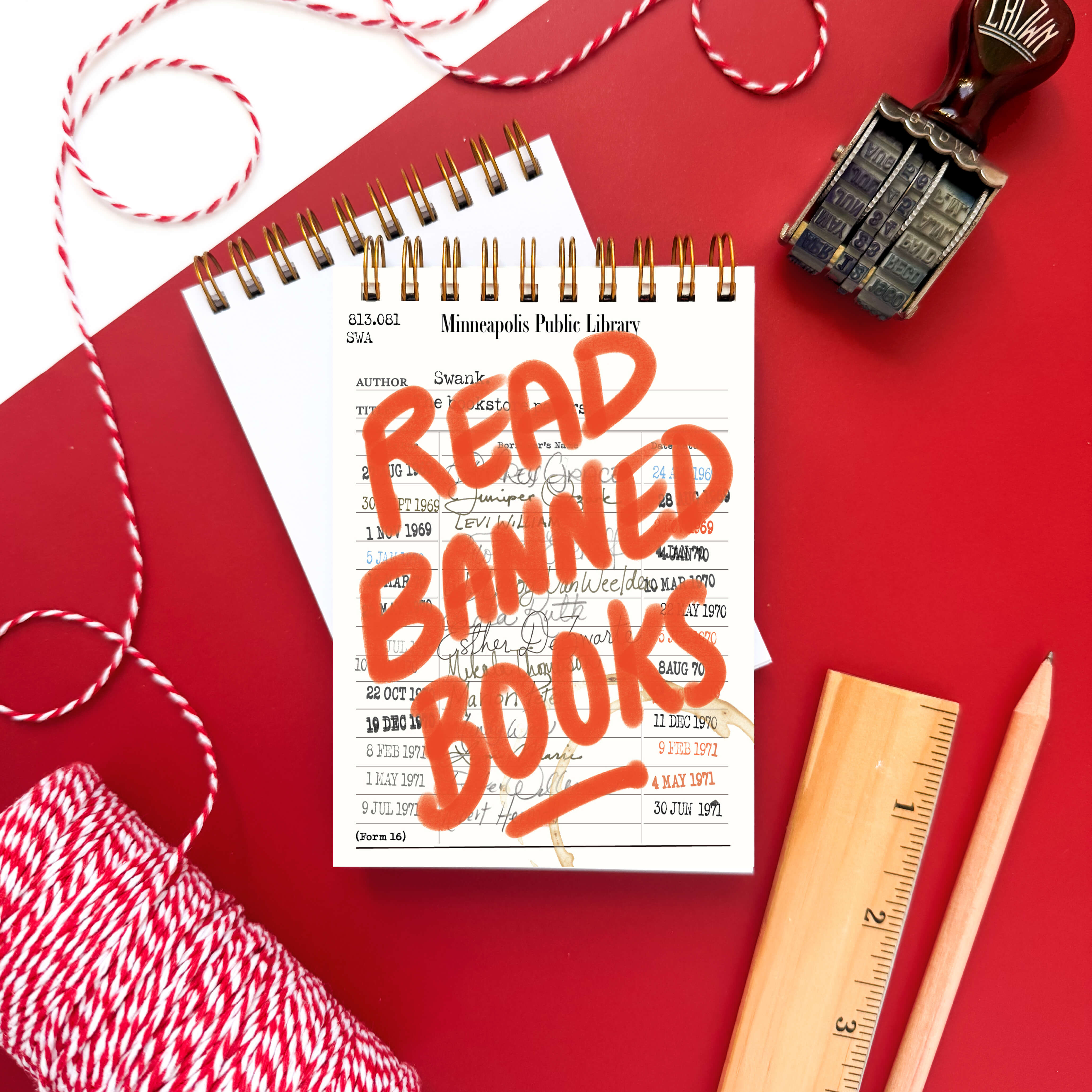 This mini notebook features a vintage library card design with “Read Banned Books” written boldly across the front in red. It’s a compact, meaningful piece made for readers who believe access to diverse stories matters. This notebook is for book lovers, librarians, teachers, and thoughtful rebels.