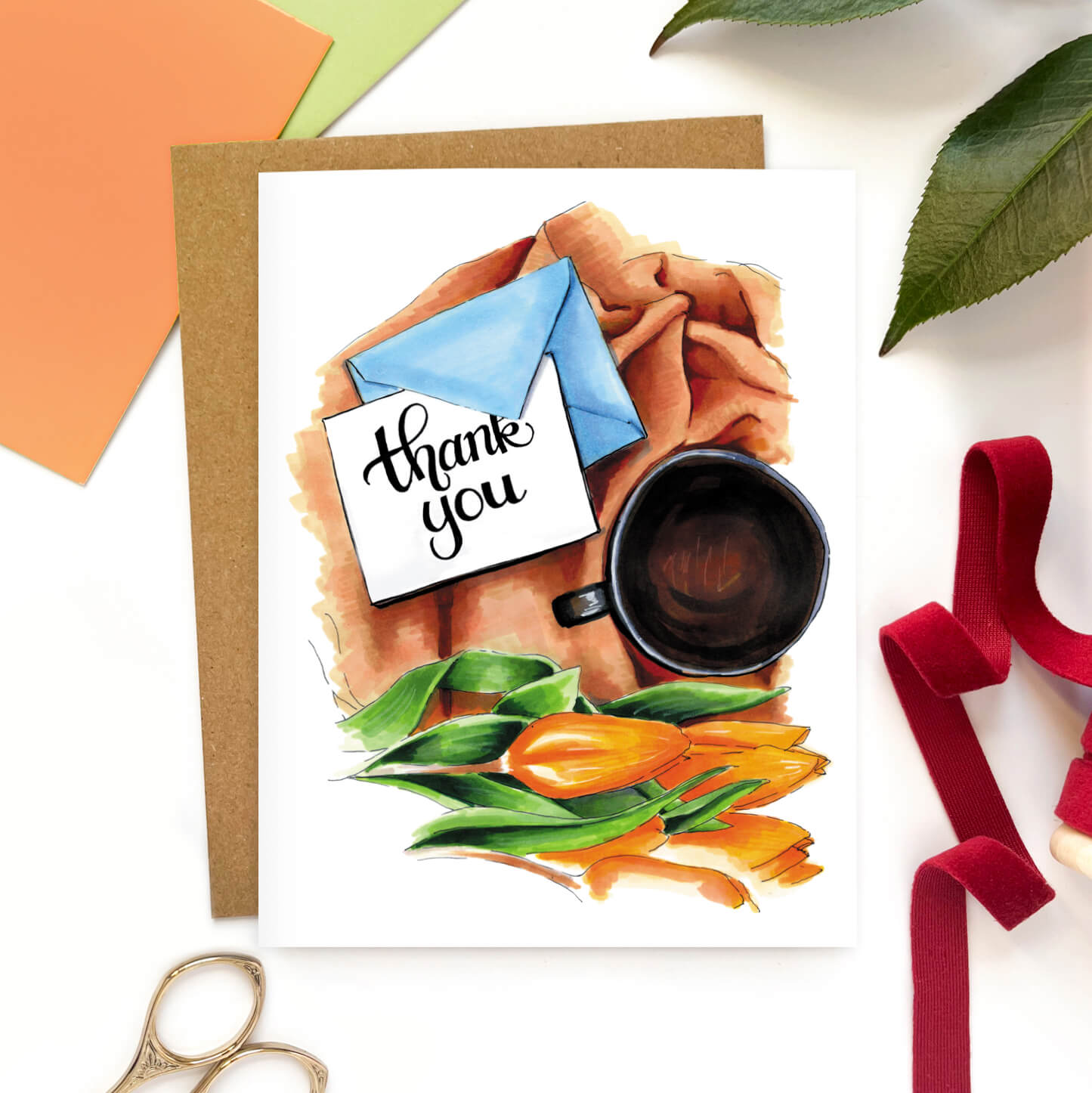 Tulips, coffee, blankets, thank you notes… all good things. This box gives you 8 cards to send as thank yous. You can purchase this card individually here.