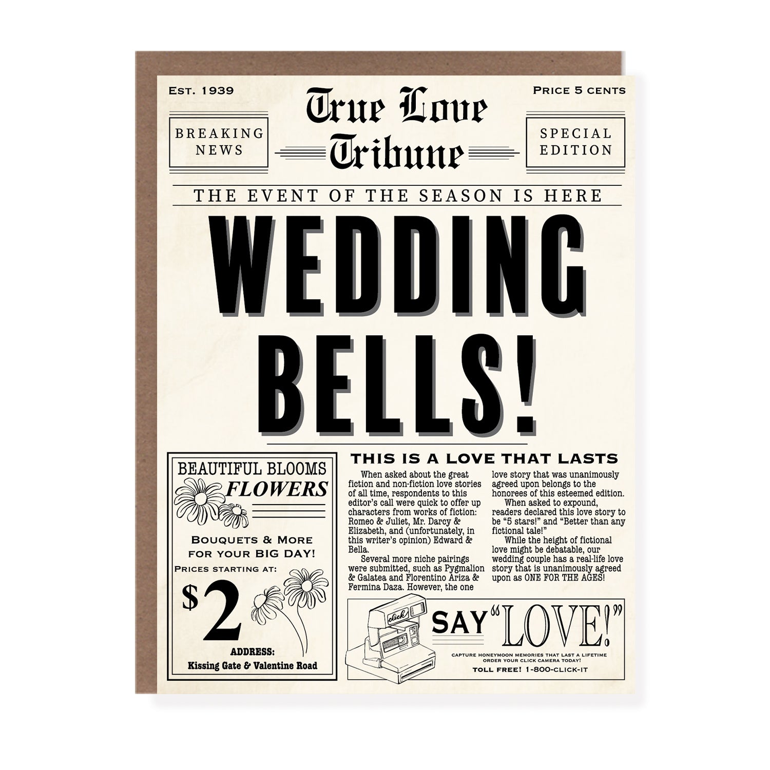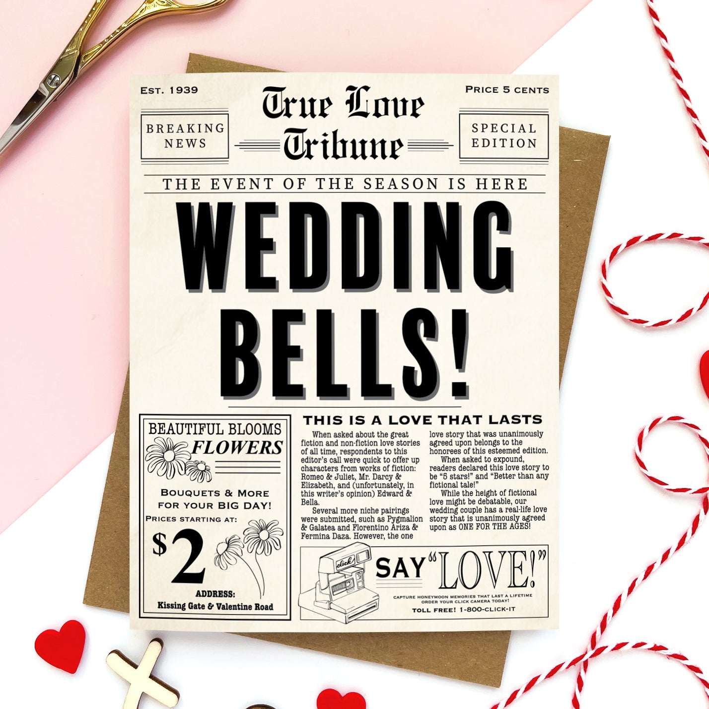 Celebrate the couple of the hour with a touch of vintage charm! This newspaper-inspired wedding card is filled with fun 'easter eggs' that capture the joy and excitement of love and marriage. From the clever article to retro adverts, this unique card will provide the newlywed couple with a good laugh.