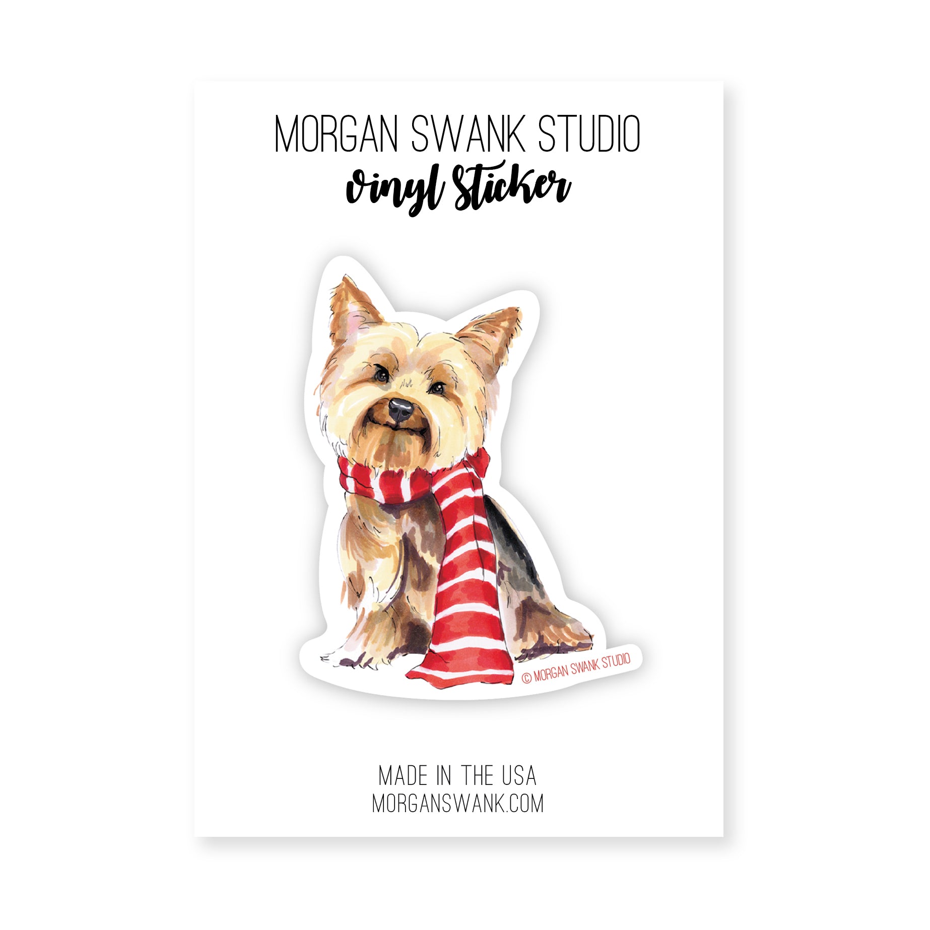 This cute little Yorkie in a scarf is an adorable addition to any water bottle, computer, or notebook.